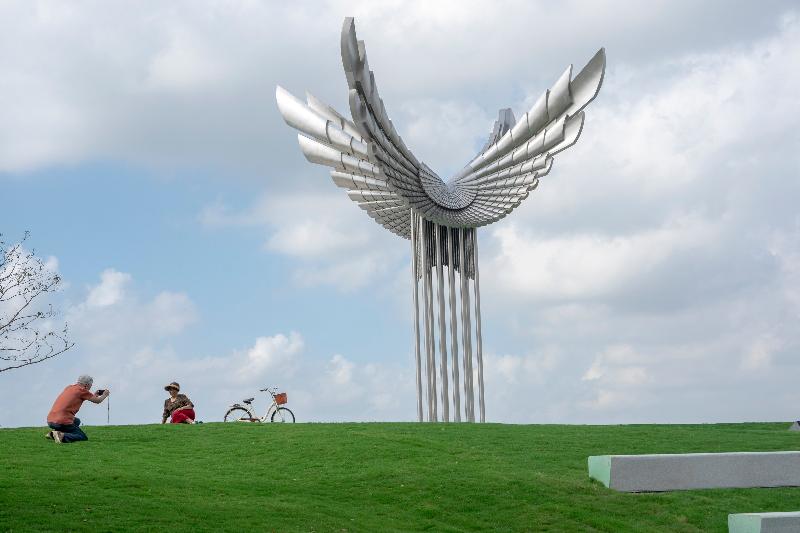 蘇州園區(qū)金雞湖畔的“飛翔”雕塑。(蘇州園區(qū)提供)