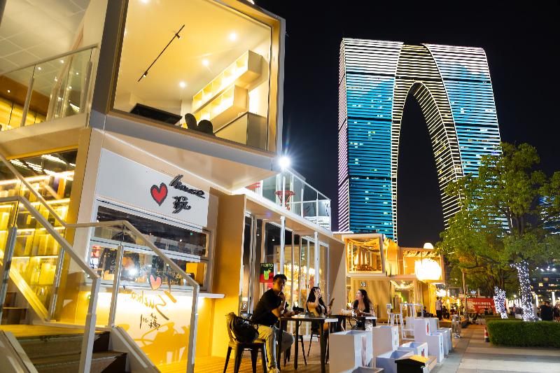 “日咖夜酒、藝趣共生”為特色的左岸158街區(qū)成為年輕人消費打卡新晉目的地。(蘇州園區(qū)提供)