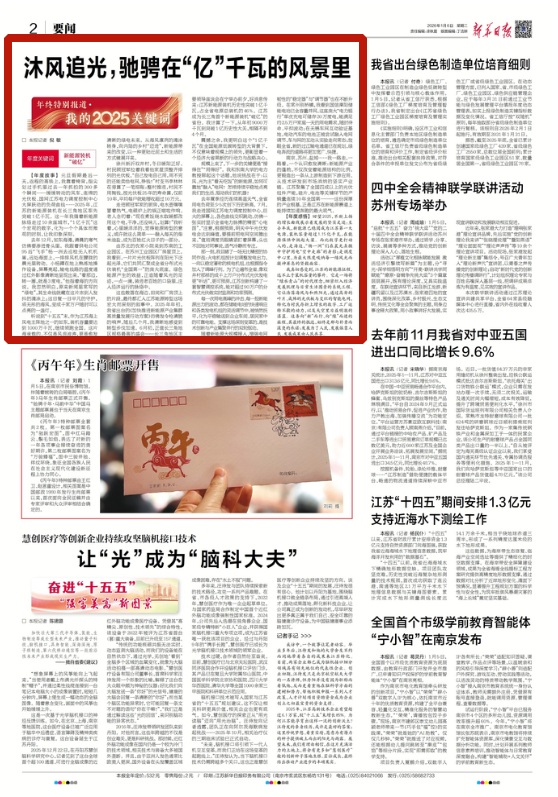 【年度故事】元旦假期最后一天,返程的高鐵上,我靠著椅背,指尖劃過手機里過去一年抓拍的300多個瞬間——緩緩轉動的風車、連綿的光伏板、國網江蘇電力調度控制中心大屏躍動的負荷曲線……2025年,江蘇的新能源裝機在長三角地區率先突破1億千瓦。這一年我循著新能源脈絡走過10余座城市,“1億千瓦”這個宏觀的數字,化為一個個具體而微觀的時刻,讓我印象深刻。