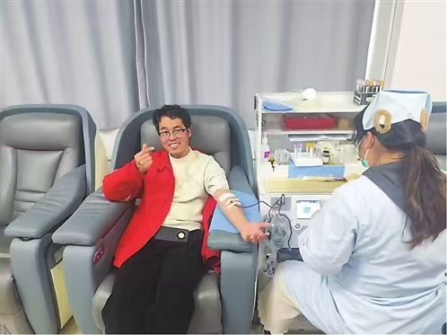 第二天中午,趙鵬與同事調換了早班,在社區工作人員陪同下來到蘇州市中心血站。填表、體檢、化驗……當殷紅的血液緩緩流入采血袋,一旁等候的張阿姨的女兒眼眶微紅,聲音哽咽著道謝。當天下午,張阿姨便順利輸上血液,病情很快得到控制。事后,老人的女兒親手寫下了感謝信,委托社區一定要送到京東外賣小哥手中,表達她最真摯的謝意。