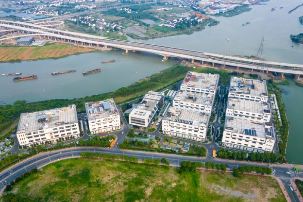 蘇州獨(dú)墅湖邊的農(nóng)田和水塘如今已建成生物醫(yī)藥產(chǎn)業(yè)集群。受訪者供圖