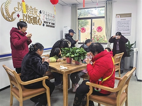 中心啟用之際,暖心的服務便已送到老人身邊。備餐間內,工作人員精心烹煮的彩色小圓子熱氣騰騰。來自星瀾學校的小小志愿者們為老人們端上暖心小圓子,軟糯香甜的圓子搭配清甜的冰糖水,讓老人們感受到濃濃的暖意。“這圓子吃在嘴里,甜在心里!”一位年過七旬的老人笑著說道,一碗碗甜蜜的小圓子傳遞著社區大家庭的溫暖,也讓老人們感受到了日照中心貼心周到的服務氛圍。