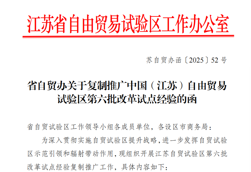 近期,省自貿(mào)辦發(fā)布中國(guó)(江蘇)自由貿(mào)易試驗(yàn)區(qū)第六批改革試點(diǎn)經(jīng)驗(yàn),蘇州自貿(mào)片區(qū)有4項(xiàng)案例入選。本次入選的案例從稅務(wù)、金融、信用等關(guān)鍵領(lǐng)域協(xié)同發(fā)力,為企業(yè)提供全方位、高效率的政務(wù)服務(wù),體現(xiàn)了蘇州片區(qū)在打造市場(chǎng)化、法治化、國(guó)際化一流營(yíng)商環(huán)境方面的制度創(chuàng)新成效。截至目前,蘇州片區(qū)已有63項(xiàng)案例在全省復(fù)制推廣。