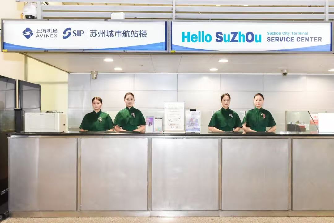 為服務入境外籍旅客,上海機場蘇州服務中心的工作人員均具備專業英語八級能力,同時也將配備專業翻譯機,可滿足不同情境的交流互動。在服務現場,工作人員將為旅客提供問詢,蘇州旅游吃住行游購娛線路推介,抵蘇交通指引、接送機,行李寄存/門到門等多樣化服務方案。