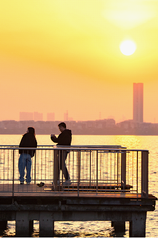 The Egrets Park is popular with sunset lovers. It is common to see people holding up their mobile phones to record the sunsets through their lenses, or simply standing still and watching the lake and the buildings on the other side of the lake.