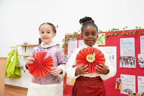 In Dulwich College Suzhou, a school for children of expats, the students watched dragon and lion dancing performances, and tried to write Chinese character “Fu” (meaning happiness and luck) and make handiworks that could be used as decorations during the festival.