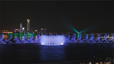 According to the design, water from the Jinji Lake Music Fountain will dance to three sets of new songs to form different shapes, with six groups of full color laser stage lights as the background.
