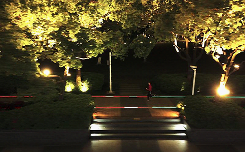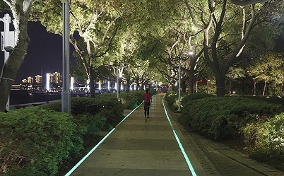 Running around Jinji Lake at night has been made interesting by the interactive lighting system newly installed at three running paths near the lake.