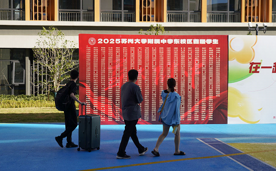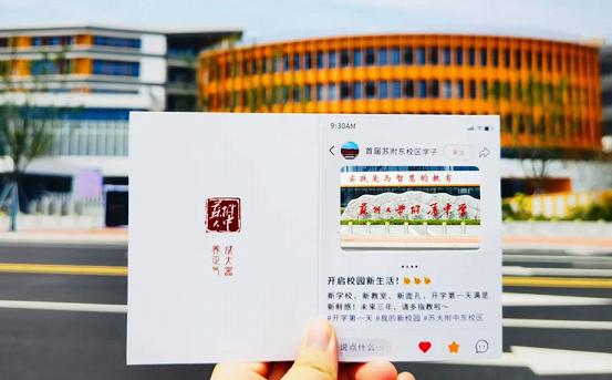 Each student entering the new campus of SIP Jingcheng School at Wangdun Road received a card with good wishes.