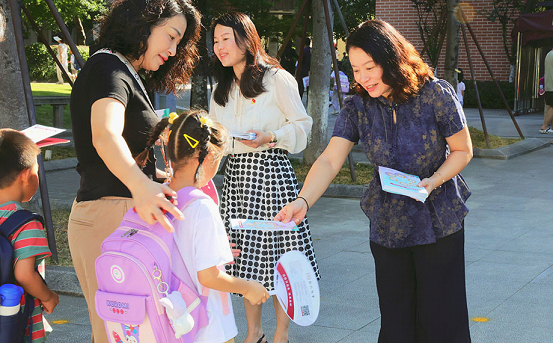 The Hualin Kindergarten’s branch at Gaohe Road was decorated with colorful balloons and paper installations to help the younger children get relaxed on the first day of kindergarten, and organized a “first writing ceremony” for older kids.