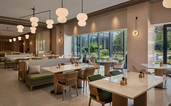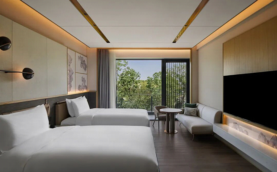 The hotel features 277 elegant guest rooms, suites and six standalone villas. The rooms present a simple yet sophisticated modern aesthetic style with elements borrowed from Suzhou’s traditional architecture and classical gardens. Each room is equipped with a 65-inch HD TV supporting wireless screen projection. Modern amenities such as smart toilets, wireless charging Bluetooth speakers and high-speed Wi-Fi are provided.