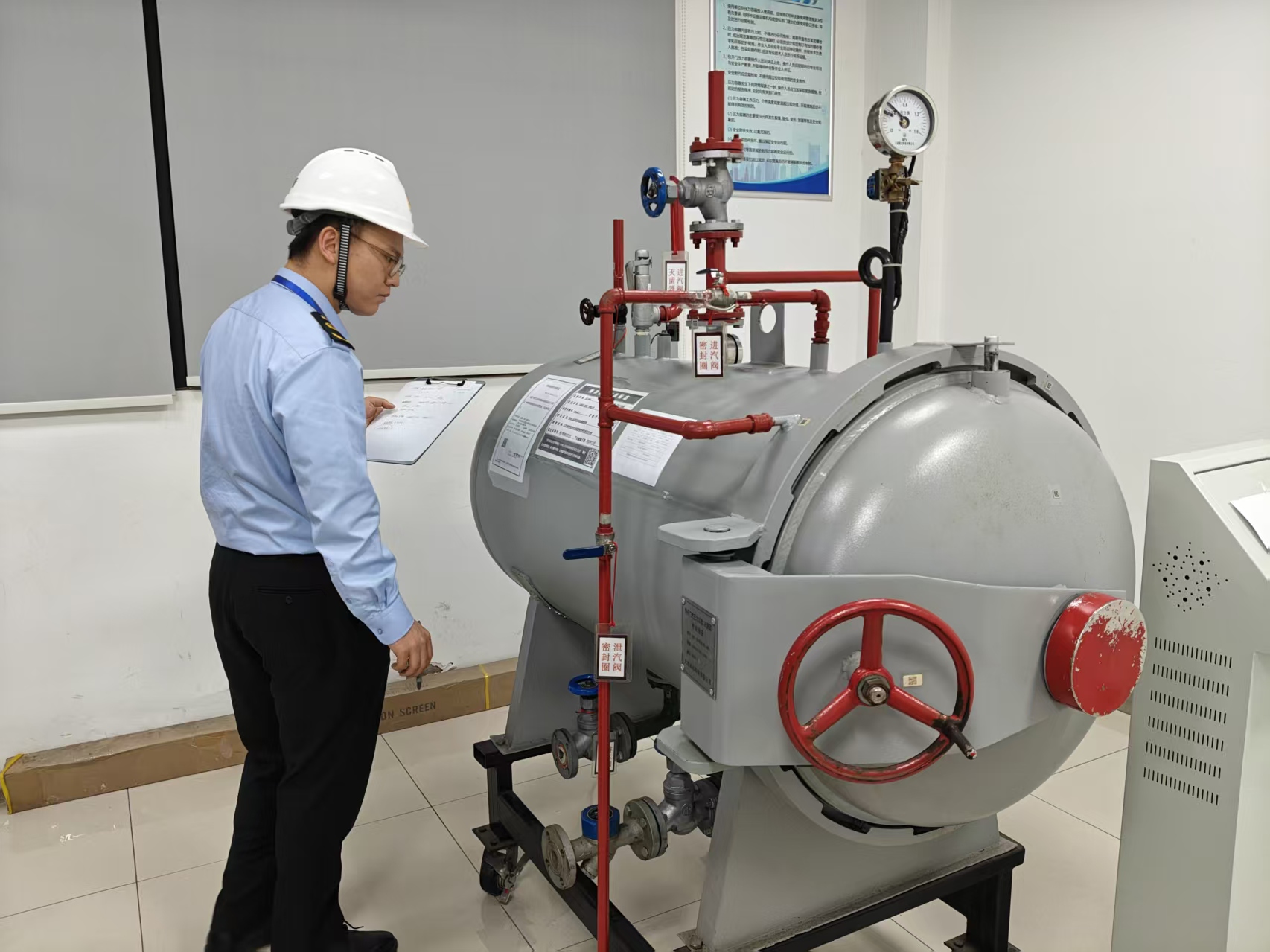 競賽采用“理論+實操”雙維度考核模式,全方位檢驗監察人員專業能力。理論環節,重點考察選手對《中華人民共和國特種設備安全法》《特種設備安全監督檢查辦法》《固定式壓力容器安全技術監察規程》等專業內容的掌握程度,夯實“依法監察”理論根基;實操環節,選手需在60分鐘內完成兩類設備的本體檢查與資料核查,精準識別設備運行參數異常、安全附件失效、技術檔案缺失等問題,考驗“精準發現、高效處置”的實戰本領。經過激烈角逐,來自高貿區分局的譚嘉晗等9名選手脫穎而出,分獲一二三等獎。?