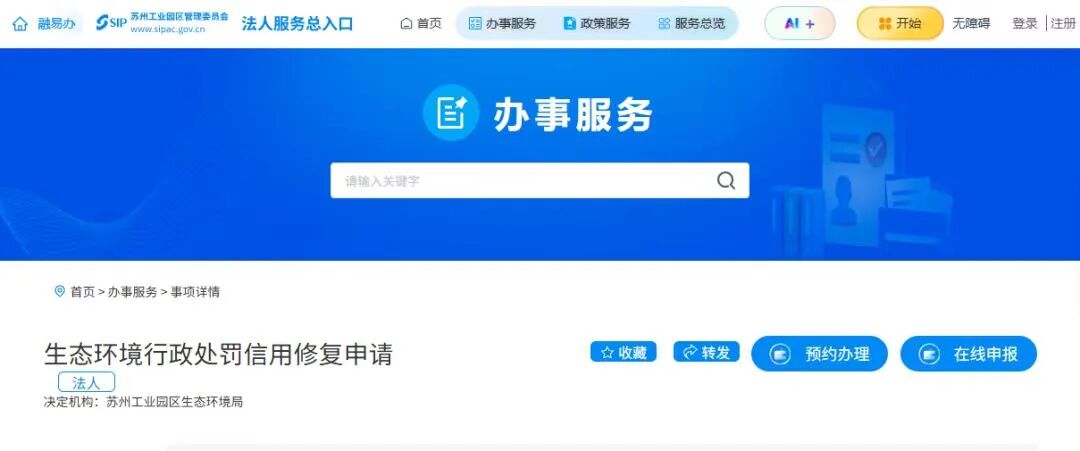 項目亮點:為持續優化營商環境、破解企業生態環境信用修復審批難題,園區生態環境局聚焦企業辦事痛點、堵點、難點,于2025年5月在園區一網通辦平臺創新推出“生態環境信用修復審批全流程網上辦理服務”,以“不見面審批”打通企業信用修復的“最后一公里”。