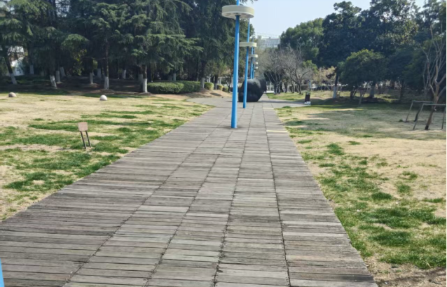 中央公園木棧道建成使用多年,因木龍骨基礎(chǔ)結(jié)構(gòu)老化腐蝕,導(dǎo)致上層賈拉木板出現(xiàn)松動(dòng)、起伏及緊固件外露等問題,既影響市民游園安全,也有損景觀整體風(fēng)貌。經(jīng)專業(yè)技術(shù)評估確認(rèn),原鋪設(shè)的賈拉木板材雖歷經(jīng)風(fēng)雨,但其材質(zhì)優(yōu)良,主體部分性能仍滿足使用要求,具備較高再利用價(jià)值。基于此,確立了“最大化利用舊材、系統(tǒng)性加固基礎(chǔ)、精細(xì)化修繕更新”的改造原則。