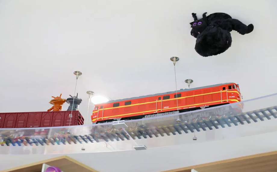 蘇玩博本次的升級(jí),不僅將原本的二樓打造為被藏品填滿的藝術(shù)空間,還對(duì)一樓進(jìn)行了特別改造。踏入博物館那一刻記得抬頭看:嘟嘟!“天花板火車”發(fā)車?yán)玻胺降秸荆宏柍魏雿u站。火車沿路還將偶遇眾多小動(dòng)物。