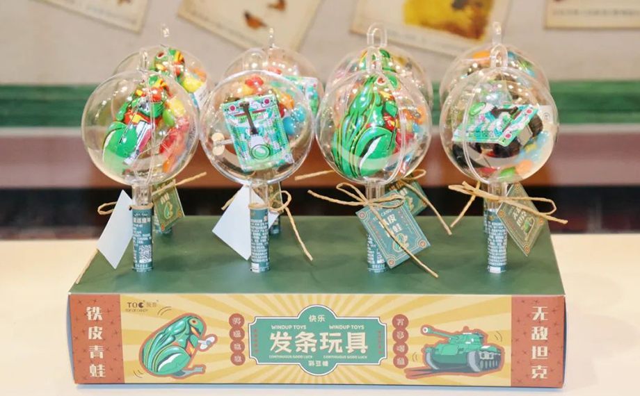 除了館藏上萬件玩具之外,蘇玩博還特別推出文創(chuàng)產(chǎn)品。鐵皮青蛙樣式的發(fā)條玩具彩豆糖首次亮相,玩玩具+吃糖果一次性滿足。陽澄湖大閘蟹玩偶萌趣十足,你還可以手動(dòng)遙控玩偶,聽大閘蟹讀古詩或講故事。