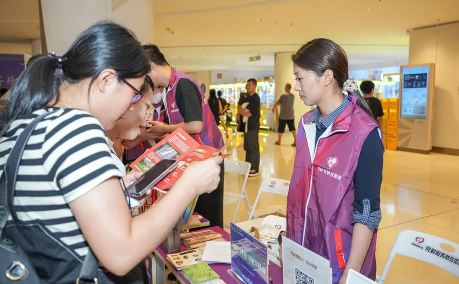 在園區(qū)公文中心服務(wù)點位前,黨員志愿者邀請現(xiàn)場市民共同暢游文化服務(wù)的云端驛站——2.0版本“文化云”小程序。云看展、云賞藝、云悅讀、云賽場等一站式“可看、可約、可互動”的線上文化大餐讓人眼前一亮,帶來了優(yōu)質(zhì)的文化體驗。