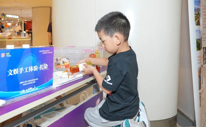 扎染是一項傳承千年的民間染色工藝。從圖案設(shè)計構(gòu)思,到布料折疊方式,再到浸染、拆線與清洗等環(huán)節(jié),泰康之家吳園的黨員志愿者細(xì)致地講解扎染步驟,并邀請市民們親自體驗,感受扎染的樂趣。