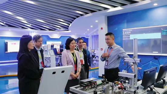 調(diào)研組一行首先來到江蘇匯博機器人技術(shù)股份有限公司,參觀公司展廳、1+X實訓(xùn)樣板間等,聽取公司開展校企合作,在工業(yè)機器人、工業(yè)互聯(lián)網(wǎng)等領(lǐng)域聯(lián)合培養(yǎng)科技人才的模式和成果介紹。